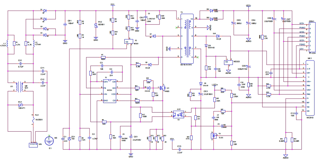 2、整体设计精简,后级无感性器件无EMI干扰问题,可用于设计异形结构;